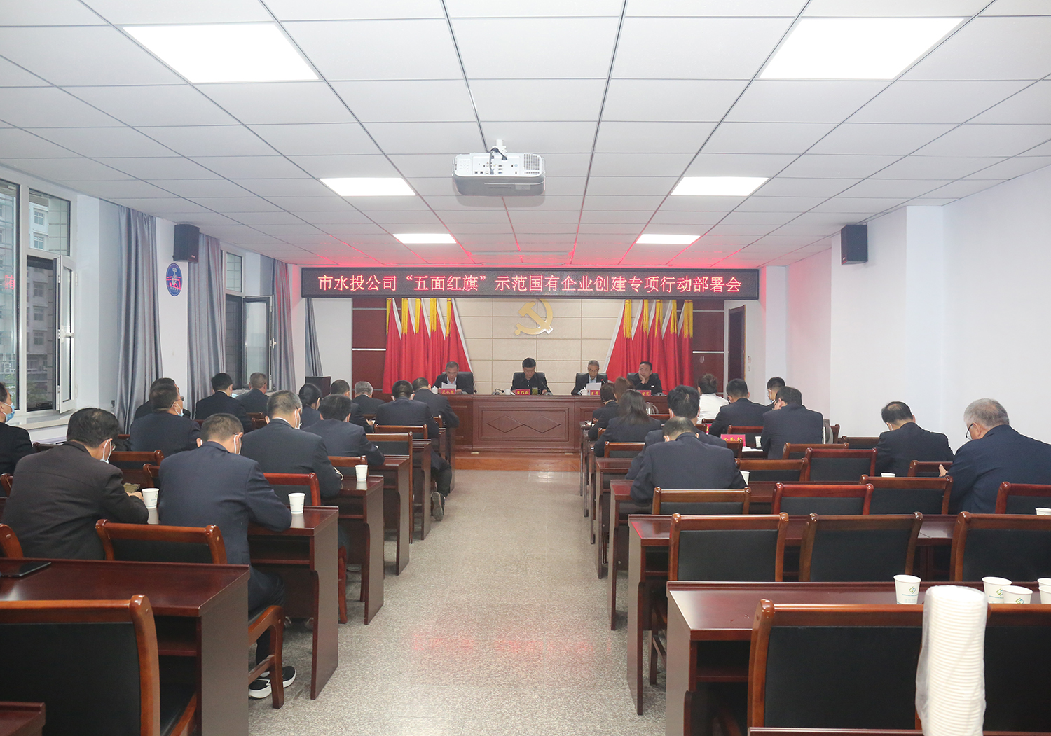 4月28日下午,公司召開“五面紅旗”示范國有企業(yè)創(chuàng)建專項(xiàng)行動(dòng)部署會暨“五一”節(jié)前廉政提醒會,公司黨委班子成員、機(jī)關(guān)中層干部、各子公司班子成員參加會議。