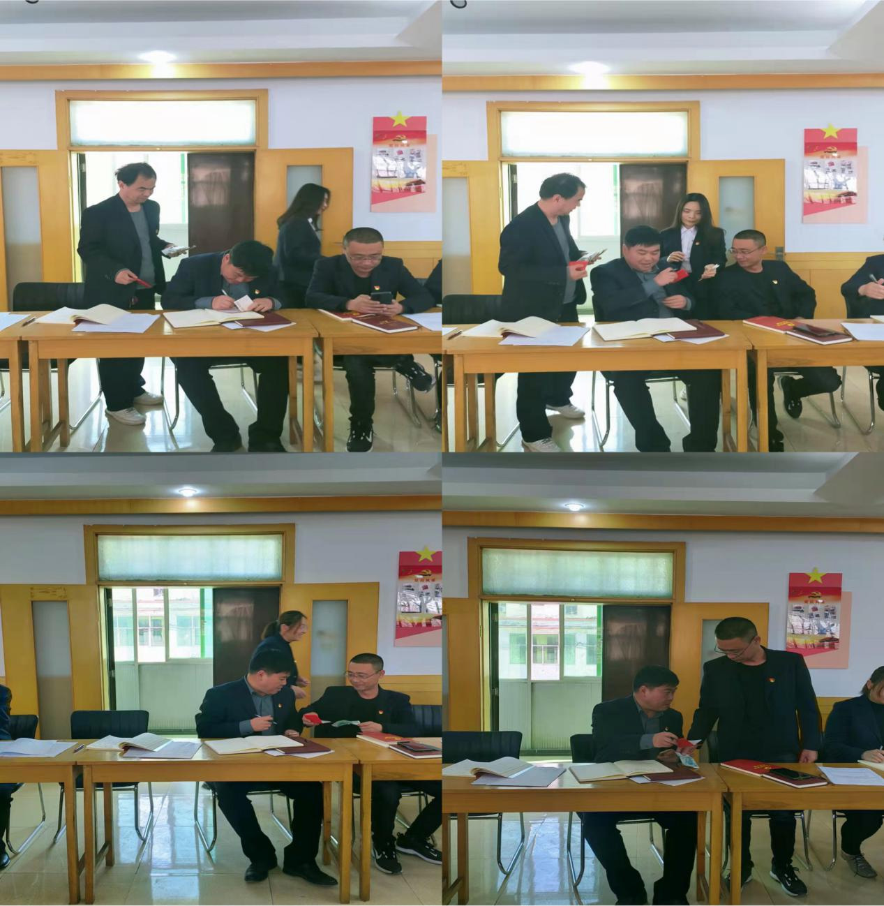 會前,全體黨員逐個(gè)向支部繳納了本月黨費(fèi),并進(jìn)行了黨費(fèi)收繳臺賬登記。