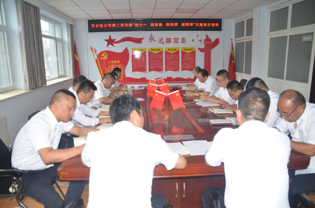 按照市水投公司黨委統(tǒng)一部署要求,第二黨支部于2024年7月1日下午開展了“迎七一 頌黨恩 明紀(jì)律 做表率”主題黨日活動(dòng),支部全體黨員、積極分子參加會(huì)議,支部書記吳爭(zhēng)兵主持會(huì)議。
