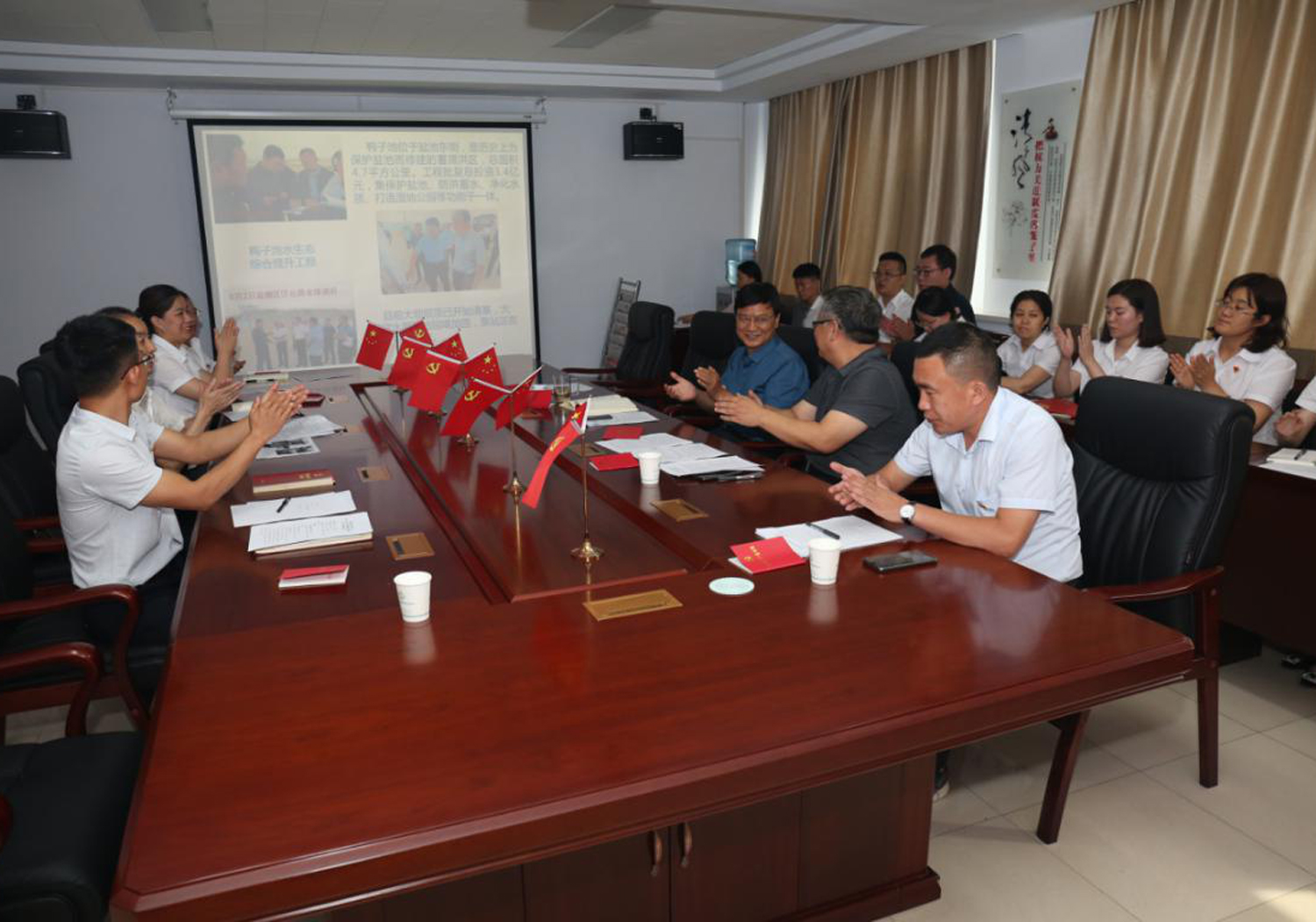 7月1日下午,支部組織黨員、入黨積極分子和群眾代表,在公司四樓黨建活動室,開展了“踐行領袖囑托,率先蹚出新路”主題黨日活動。市國資委國企黨建與企業(yè)領導管理科科長呂增軒一行到會指導。