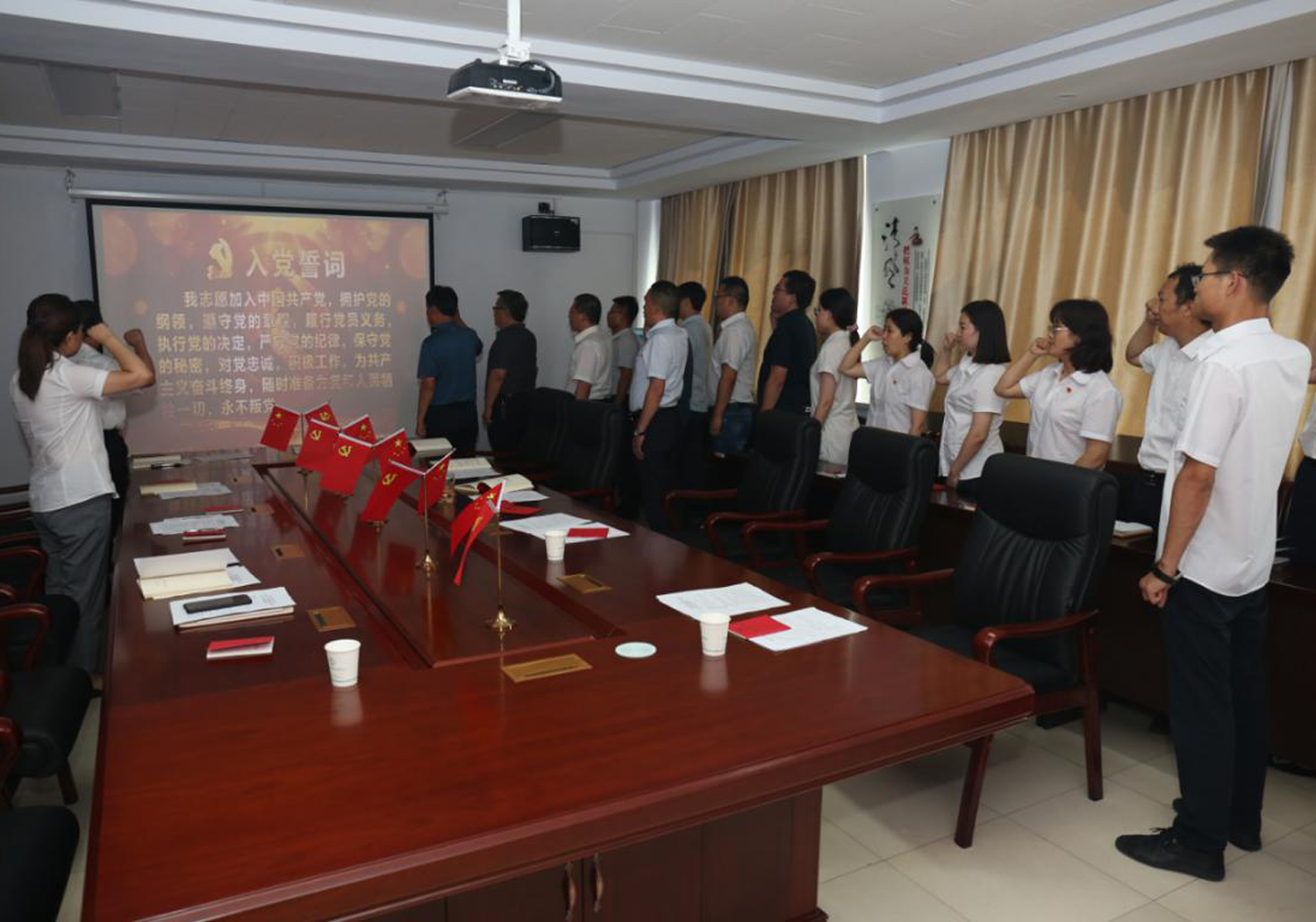 支部書記呂希汶領誓,全體黨員共同重溫了入黨誓詞。