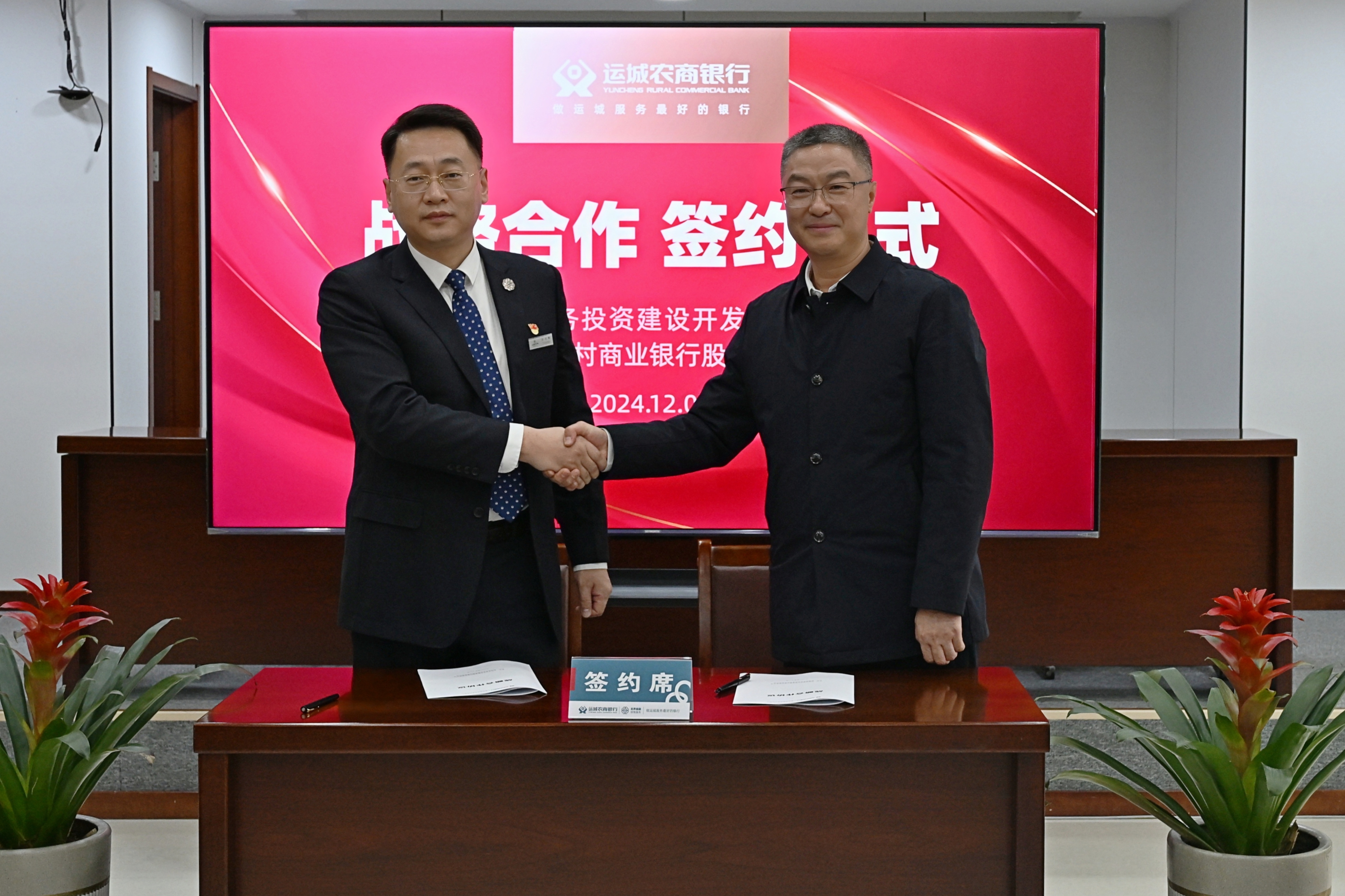 2024年12月5日下午,公司黨委書(shū)記、董事長(zhǎng)薛文兵,運(yùn)城農(nóng)商銀行黨委書(shū)記、董事長(zhǎng)蘭占峰,代表雙方在農(nóng)商行共同簽訂了戰(zhàn)略合作協(xié)議。運(yùn)城農(nóng)商銀行黨委副書(shū)記、行長(zhǎng)陳臨生主持儀式。公司黨委副書(shū)記、總經(jīng)理?xiàng)钏仄?,雙方相關(guān)部門(mén)負(fù)責(zé)人參加了簽約儀式。